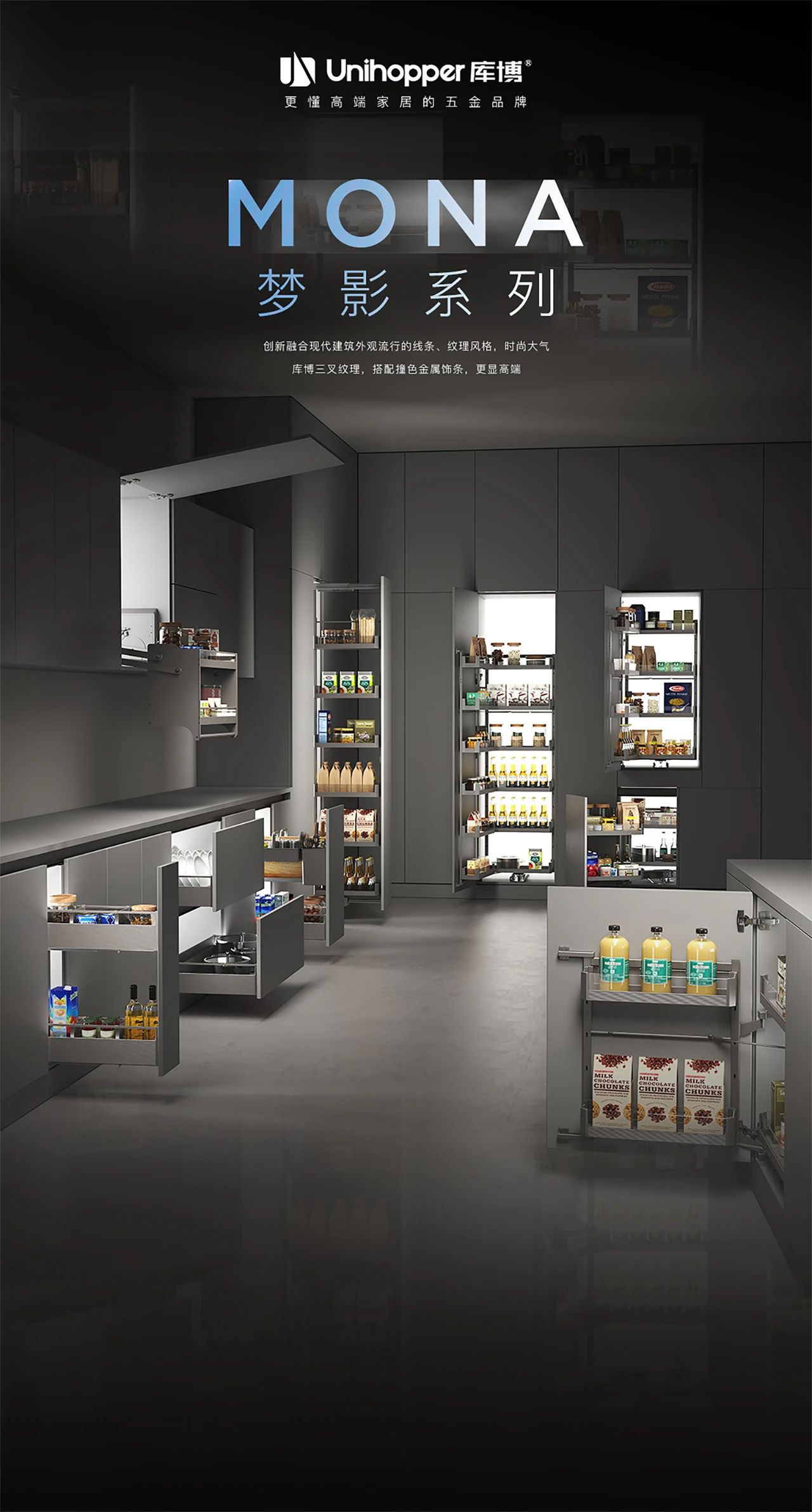 The star product unveiled at the event—the MONA Series—was crafted by Juan Carlos. Inspired by German JUNKERS KITCHEN, this series blends industrial aesthetics with aerospace precision. Its millimeter-level undulating lines reconcile functionalism and romanticism, creating a poetic harmony for modern kitchens.